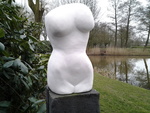 2019Uit verschillende steensoorten maak ik beelden waarin ik met lijnen speel. Dit beeld is gemaakt uit Pierre de lens en is winterhard.
